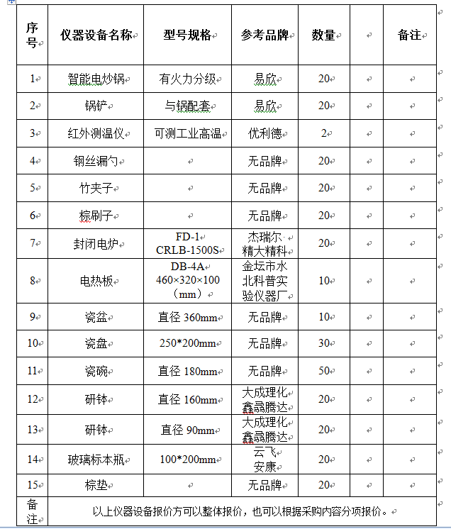 1、报价一览表