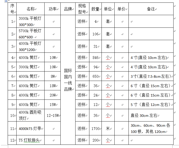 2、询价项目:科研办公楼灯具