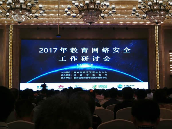 本网讯(通讯员王志)5月17、18日,2017年教育网络安全工作研讨会在南昌召开,会议由教育部教育管理信息中心主办、江西省教育厅承办,中科院院士郑建华出席会议,全国各有关省市教育主管部门信息中心负责人、各有关高校及中职学校信息中心负责人、知名网络信息安全服务厂商等1500余人参会。会议由教育部教育管理信息中心副主任罗方述主持。beat365官网信息化建设与发展中心负责人王志应邀参会。