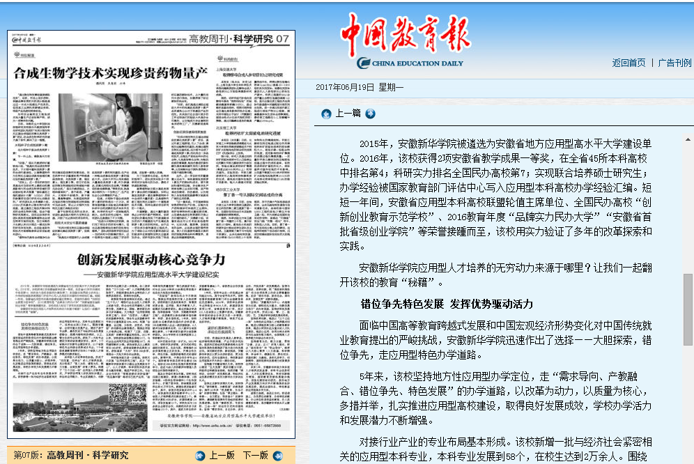 beat365官网应用型高水平大学建设经验获《中国教育报》专题报道