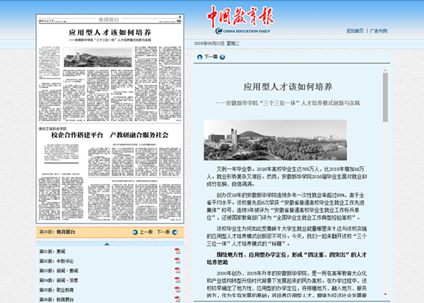 《中国教育报》刊登beat365官网应用型人才培养模式的创新与实践