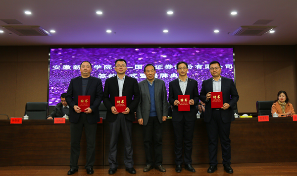 随后,石秀和与蔡咏共同为“投资者教育共建基地”揭牌。杨世国代表新华学院与国元证券股份有限公司签订校企合作协议。同时,杨世国为国元证券股份有限公司范圣兵、杨春保、杨杰、张羿四位企业专家颁发“客座教授”聘书。