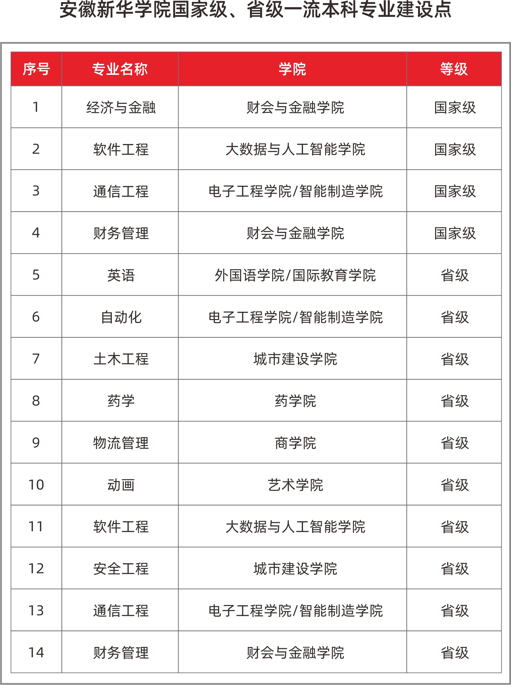以服务安徽省与长三角区域经济社会发展为导向,设置本科专业61个(其中2024-2025学年度招生专业45个),形成以工、管为主,经、教、文、医(药)、艺等多学科协调发展的专业体系。共获批4个国家级一流本科专业建设点、10个省级一流本科专业建设点,国家级一流本科专业总数位居全国民办高校第六位。