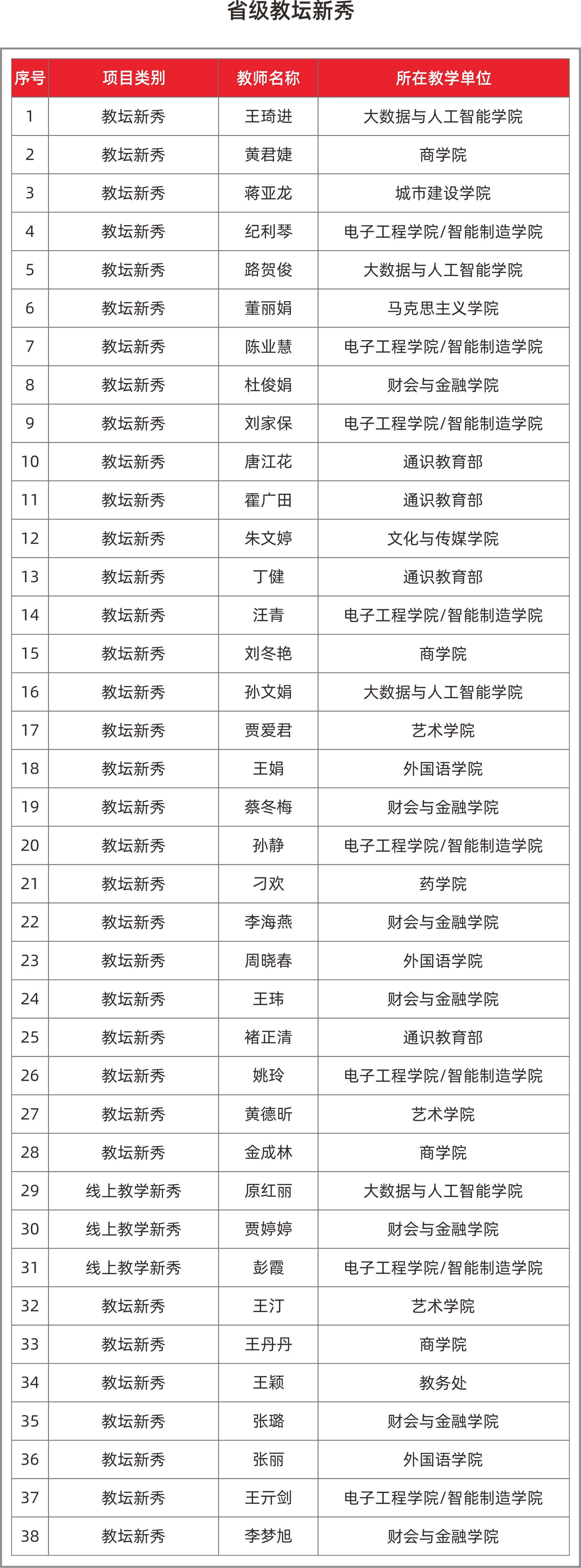 为打造高水平师资队伍,全面提升教师教学能力、产学研用能力,学校构建了分层分类的教师培养培训体系。通过岗前培训夯实教学基本功,依托教学能力发展中心开展“教学沙龙”“教学工作坊”“名师讲坛”等在职研修活动,并积极鼓励支持教师赴企业实践、行业机构挂职。目前已形成"省级教学名师-校级最受欢迎教师-青年教学骨干"三级梯队,目前beat365官网拥有省级教学名师、优秀教师、课程思政教学名师等35人,教坛新秀38人。