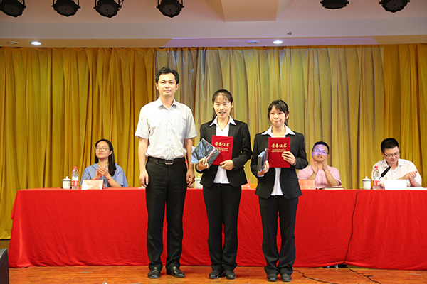 典礼上,校宣传处处长助理范文其宣读了本次比赛的获奖名单。在场领导和教师为获奖学生颁发了荣誉证书,并合影留念。随后,本次比赛一等奖选手、信息工程学院2016级计算机科学(软件)1班的王丽萍向在场观众分享了她如何以课堂笔记为起点、培养良好学习习惯的经验。