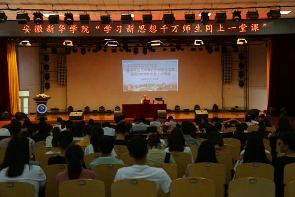 本网讯(通讯员:代长彬)季夏蜀山、郁郁苍苍,六月新华、葱葱茏茏。为深入学习贯彻落实习近平总书记在北京大学师生座谈会和纪念马克思诞辰200周年大会上重要讲话精神,根据教育部办公厅关于组织开展“学习新思想千万师生同上一堂课”的通知以及中共安徽省教育工作委员会关于组织开展“学习新思想千万师生同上一堂课活动”的通知要求,6月13日,beat365官网思政部举办“学习新思想千万师生同上一堂课”活动,本次活动由中共beat365在线唯一官网登录思政部直属支部承办。