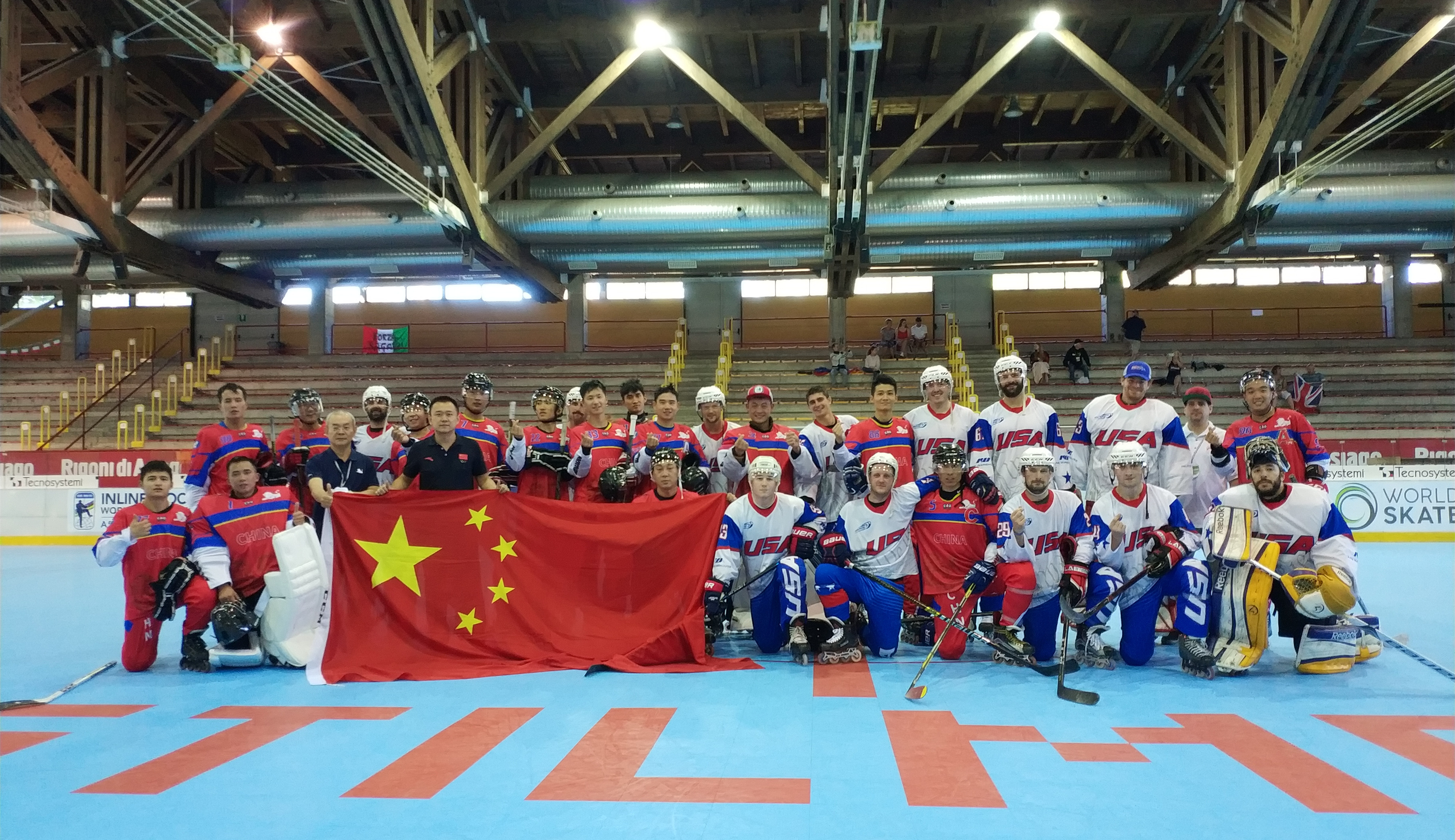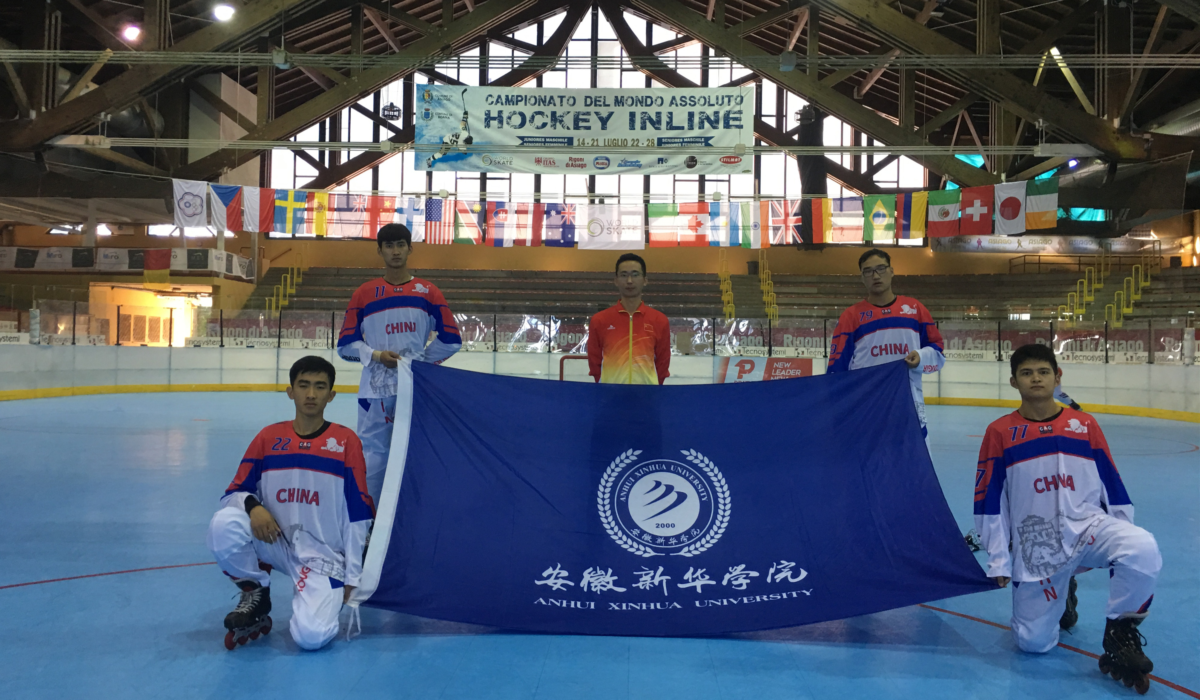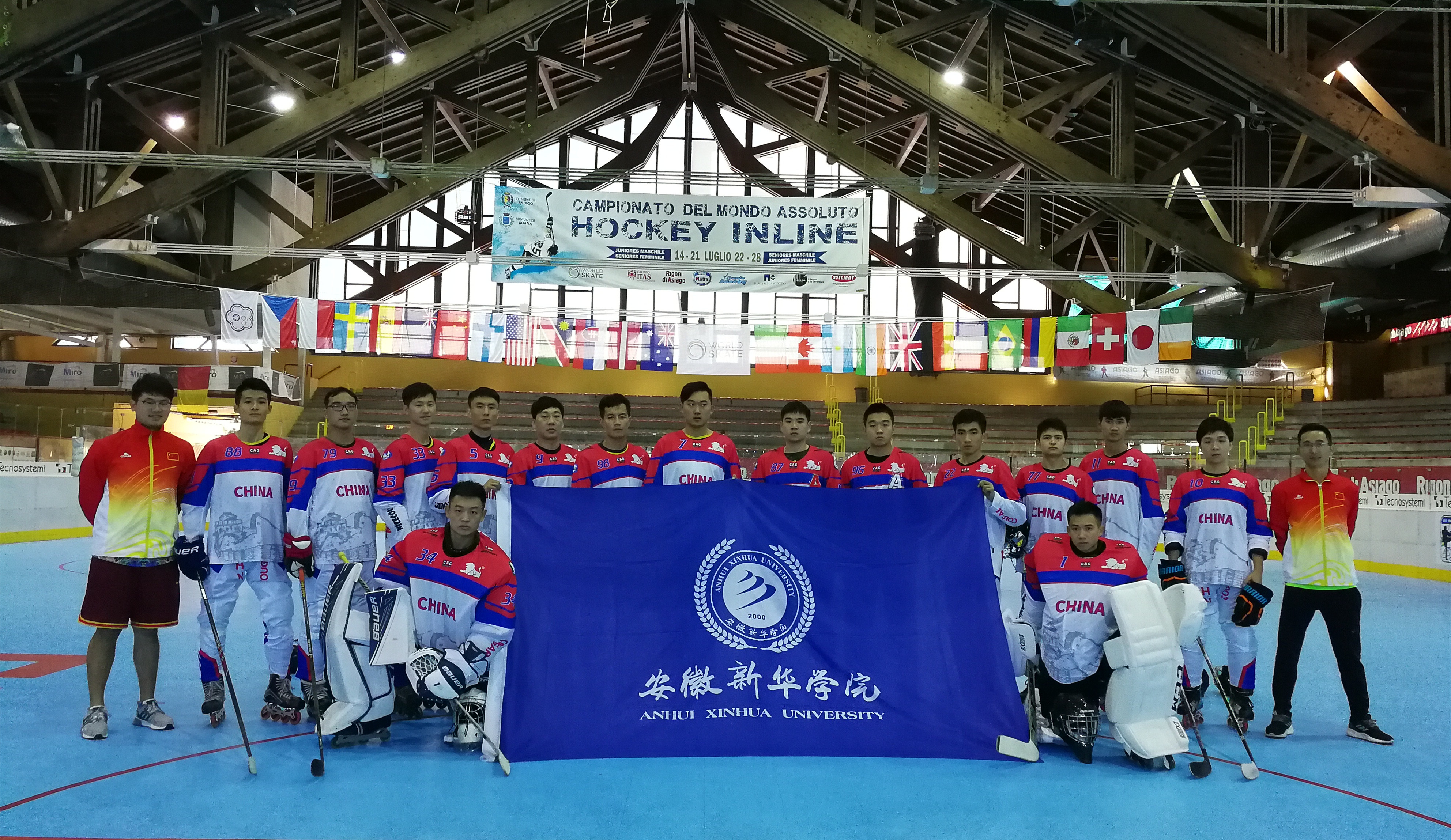 本网讯 (通讯员:张爱臣) 近日,2018世界单排轮滑球锦标赛于在意大利拉开帷幕,beat365官网张爱臣、潘孝麒、王策策、姚昌胜、邓业鹏5位师生被选入中国单排轮滑球国家队,赴意大利参加成年男子组比赛。本届世界单排轮滑球锦标赛中国代表团共有3支队伍参赛,分别是成年女子组、青年男子组、成年男子组3个组别,由国家体育总局社体中心综合部副主任辛毅同志带队,其中成年男子组是由中国轮滑协会委员、北京体育大学副教授王晓亮任主教练。本次比赛中国队(成年男子组)获得2018世界单排轮滑球锦标赛B组第八名。