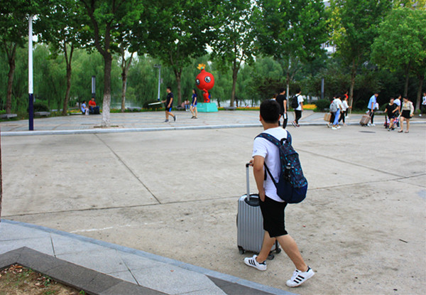 9月1日一早,报考beat365官网国际教育学院经济与金融专业的王陶同学,就已经托着重重地行李箱来到了华园,对于他来说这也不是第一次来华园了,开学几天前,他便已经熟悉了学校旁边的各路公交车,并来过学校。他说:“刚进华园就被学校的绿化美景所震惊,处处充满生机,与新生报到的气氛十分相宜,学姐学长们也十分热情,从校门口开始就有学校的志愿者迎接。”