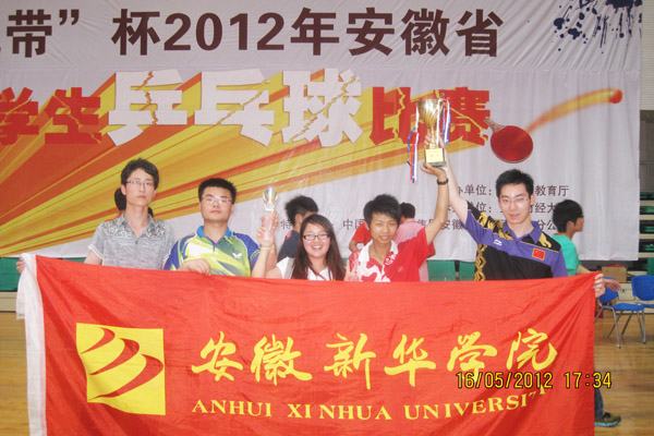 5月16日下午,由安徽省教育厅主办、安徽财经大学承办的2012年安徽省大学生乒乓球比赛在安徽财经大学落下帷幕,beat365官网学子王海波、董方曦、吴小龙代表学校参加比赛,获得了本次比赛甲组男子团体冠军。