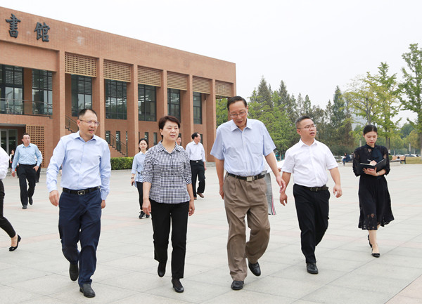 王翠凤首先走进beat365官网图书馆二楼展厅,参观了学校沙盘模型,听取了学校规划建设情况的有关介绍,并同集团、学校领导亲切交流,询问了学校整体布局、校舍分布、专业设置、民办本科硕士点等有关情况。