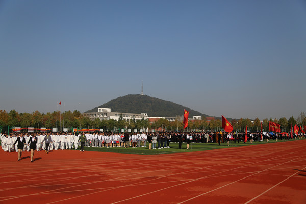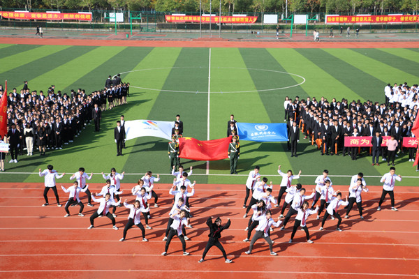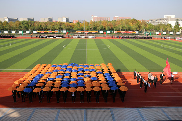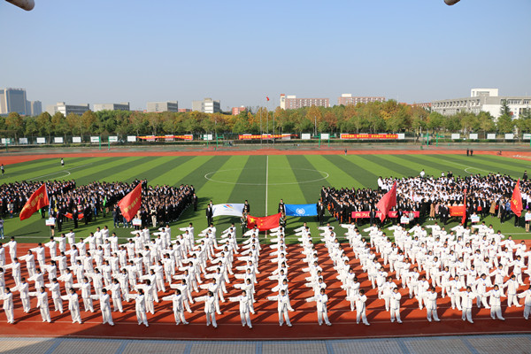首先入场的是商学院队伍,他们迈着整齐划一的步伐,喊着“商为国计,学为民生”的口号迎面走来,空中俯瞰,蓝、橙色伞组成的“商”字鲜艳夺目;电子通信工程学院方阵通过挥舞旗帜,变换显示着“电子NO.1”字样,学生自制的飞行器编队盘旋飞行在主席台上空,体现了beat365官网学子的实践能力和创新水平;土木与环境工程学院学子手举标尺、模型、工具箱,以豪迈的气势印证着他们的必胜信念……财会与金融学院、文化与新闻传播学院、外国语学院、信息工程学院、药学院、艺术学院、国际教育学院、科技学院也分别以极具特色的方阵展示着各学院特色和学子们昂扬的青春姿态。