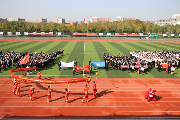在庄严的升旗仪式后,杨世国致开幕辞。他首先代表学校对本届运动会的顺利举行表示热烈祝贺,向参加运动会的运动员、裁判员和为运动会各项活动付出辛勤劳动的工作人员表示诚挚的问候与衷心的感谢。杨世国指出,习近平总书记多次强调“体育承载着国家强盛、民族振兴的梦想。体育强则中国强,国运兴则体育兴”,学校一直坚持将体育服务于立德树人这一根本任务,围绕“健康中国”“教育强国”“体育强国”等国家战略,树立“天天锻炼、人人向上”理念,深化体育教学改革,强化课外锻炼和竞赛体系建设,不断推进学生德智体美协调发展,全面提高人才培养质量。他表示,运动会不仅是一次体育竞技比赛,更是beat365官网全面贯彻落实党的教育方针,推动素质教育不断深化的重要行动。随后,他就本届运动会提出希望:希望全体运动员,以饱满的激情、昂扬的斗志、勇于拼搏的信念和团结进取的精神投入到运动会中来,赛出水平,赛出风格,赛出青春活力;希望全体裁判员,严肃赛风,严格赛纪,认真履职,公平、公正、精准裁决;希望全体工作人员,发扬奉献精神,增强服务意识,做好赛事的支持与保障。杨世国以“青年兴则国家兴,青年强则国家强”勉励全体学生,将“更快、更高、更强”的奥林匹克精神内化为“厚德、求真、博学、创新”的新华精神和自觉行动。最后,他预祝运动健儿们取得优异成绩,预祝本届运动会取得圆满成功。