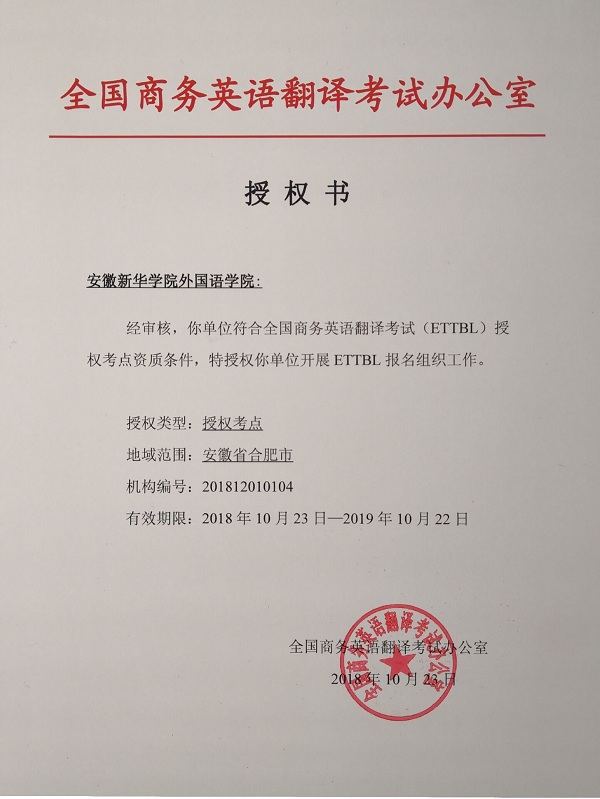 安徽省首家全国商务英语翻译考试授权考点落户beat365官网外国语学院
