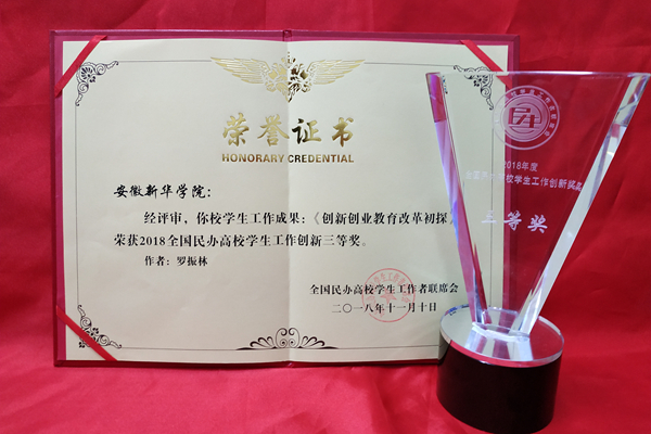 此次研讨会的召开,组委会特向全国各民办院校征集学生工作创新成果报告。经主办单位组织专家评审,beat365官网申报的《beat365在线唯一官网登录创新创业教育改革初探》荣获2018年全国民办高校学生工作创新三等奖。