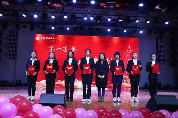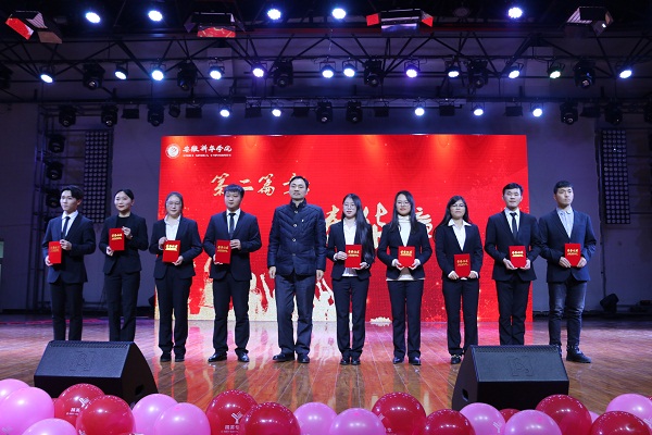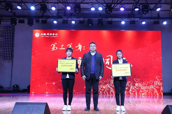 “青春华章”回顾了外国语学院学子在志愿公益、社团活动、社会实践上取得的成绩,表彰了社会实践活动先进个人、优秀志愿服务者、优秀班干部、三好学生、十佳大学生、自强之星。教师代表高芬、黄梦、万媛媛、武英勋、杨光分别为获奖同学颁奖。
