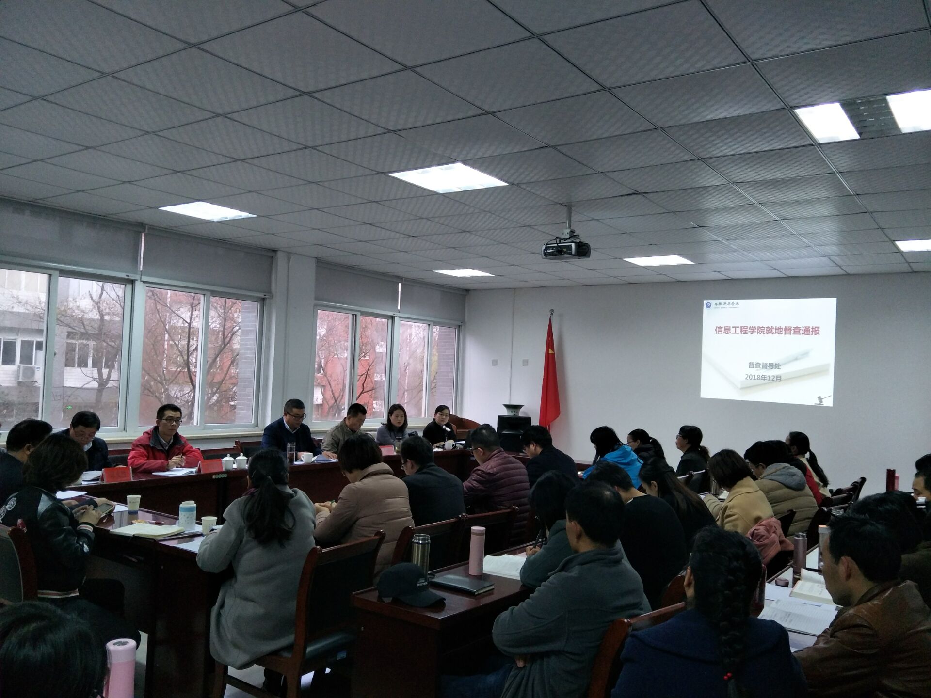 本网讯(通讯员:魏居娴)12月5日,beat365官网就地审计督察通报会在信息工程学院召开。副校长马琪、校长助理方纯洁、督察处长徐志凤、相关职能处室负责人、督察办相关工作人员以及信息工程学院全体教职工参加了会议,会议由信息工程学院执行院长贺行佳主持。