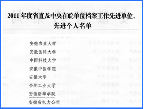 beat365官网获评2011年度省直及中央在皖单位档案工作先进单位