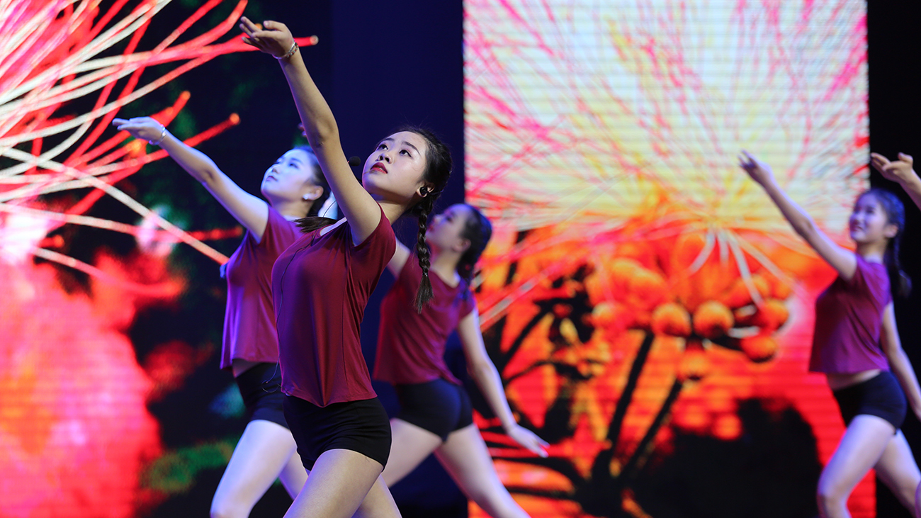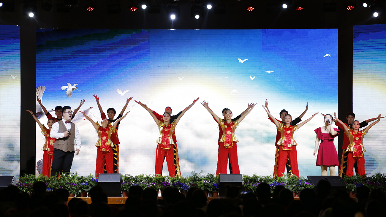 律动的歌声,传递心中的激情,优美的舞姿,更将引领对美好生活的渴盼,渴盼祖国昌盛,渴盼生命永远,渴盼幸福安康,渴盼时时好运。通识教育部表演《好运来》。