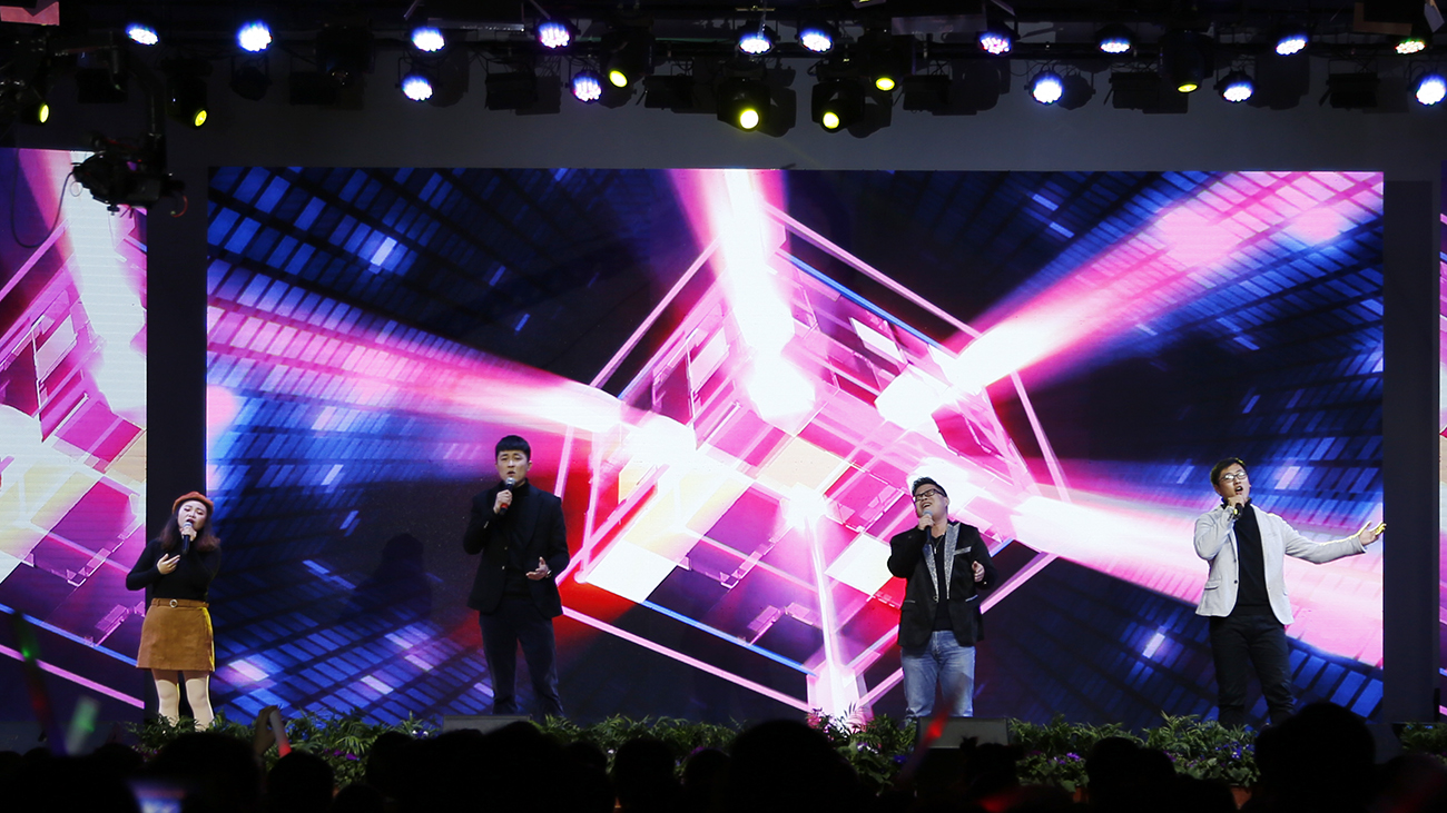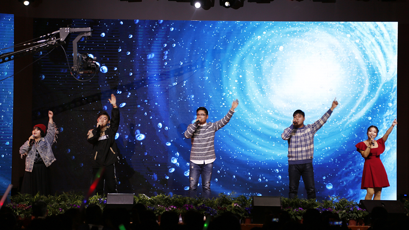 幕后导演登台,由教师贺行佳、杨光、窦梅朋、李武军带来的歌曲《向往》,将晚会推向高潮。