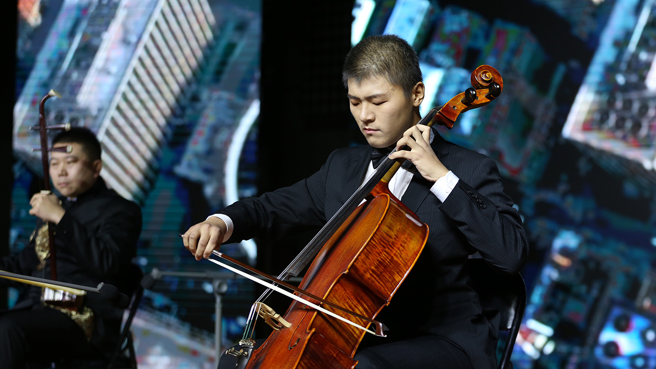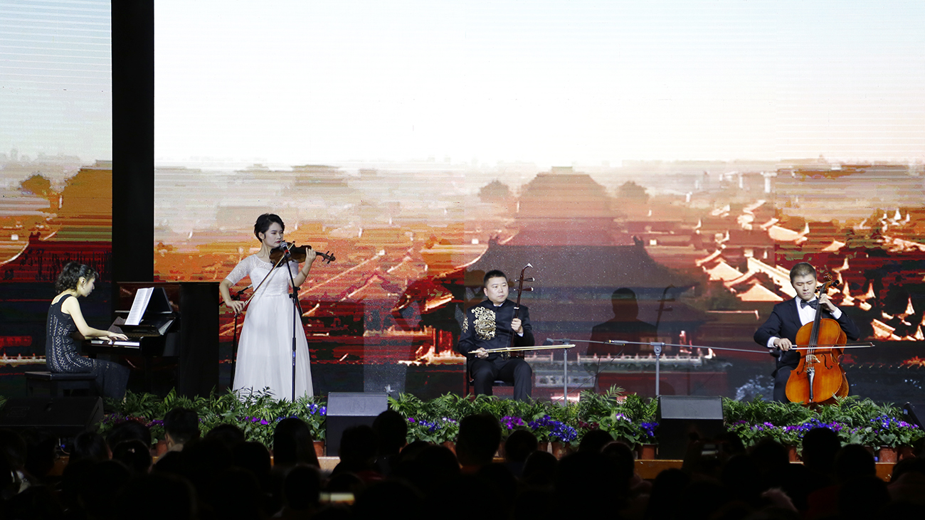 师生组合带来了《东方与西方》表演,钢琴、二胡、大提琴、小提琴的组合,不仅是耳朵的享受,更是视觉的盛宴。
