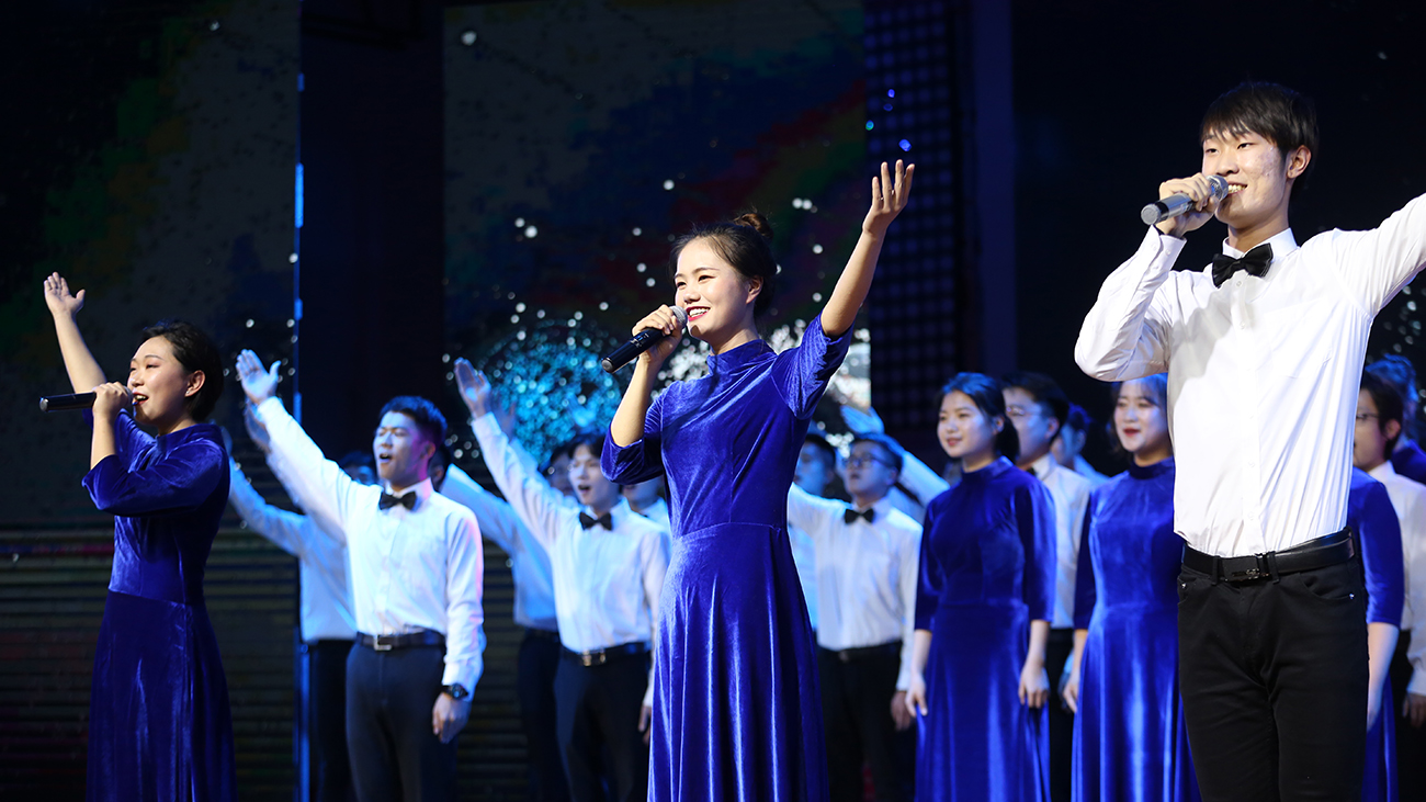 最后,教师范文其、杨光、孙珊珊、叶文慧一曲《祝福新华》为晚会画上了圆满的句号。