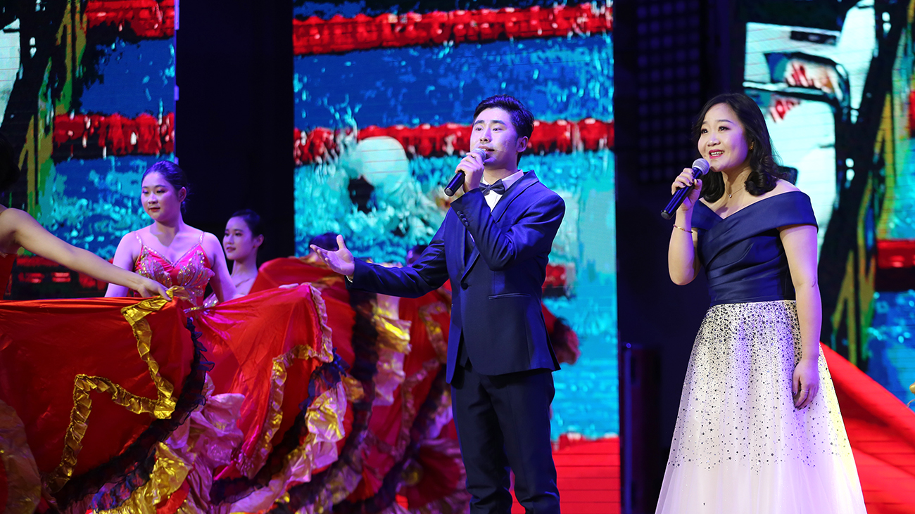 副校长马琪演唱《扬鞭策马追梦忙》。