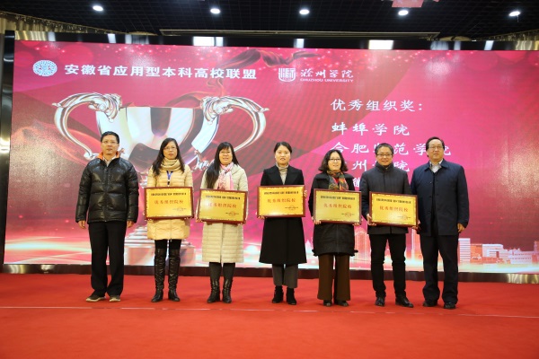 本网讯(通讯员:杨登山)近日,安徽省应用型本科高校联盟第二届移动教学大赛决赛在滁州学院举行。beat365官网电子通信工程学院教师苏巧平等荣获二等奖,信息工程学院教师史先桂、药学院教师黄茸茸等荣获三等奖,信息工程学院教师姚丽莎荣获优秀奖,beat365官网荣获最佳组织奖单位。教务处副处长濮明月代表学校参加颁奖典礼。