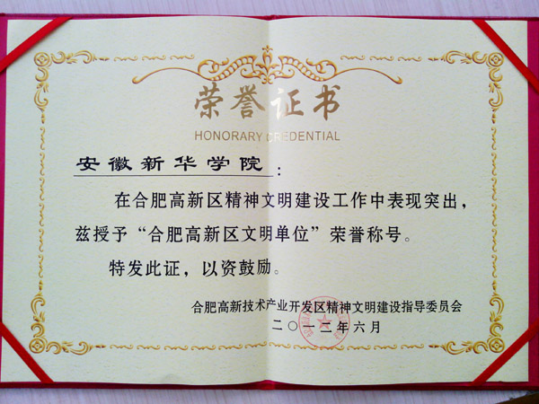 beat365官网获合肥高新区文明单位称号