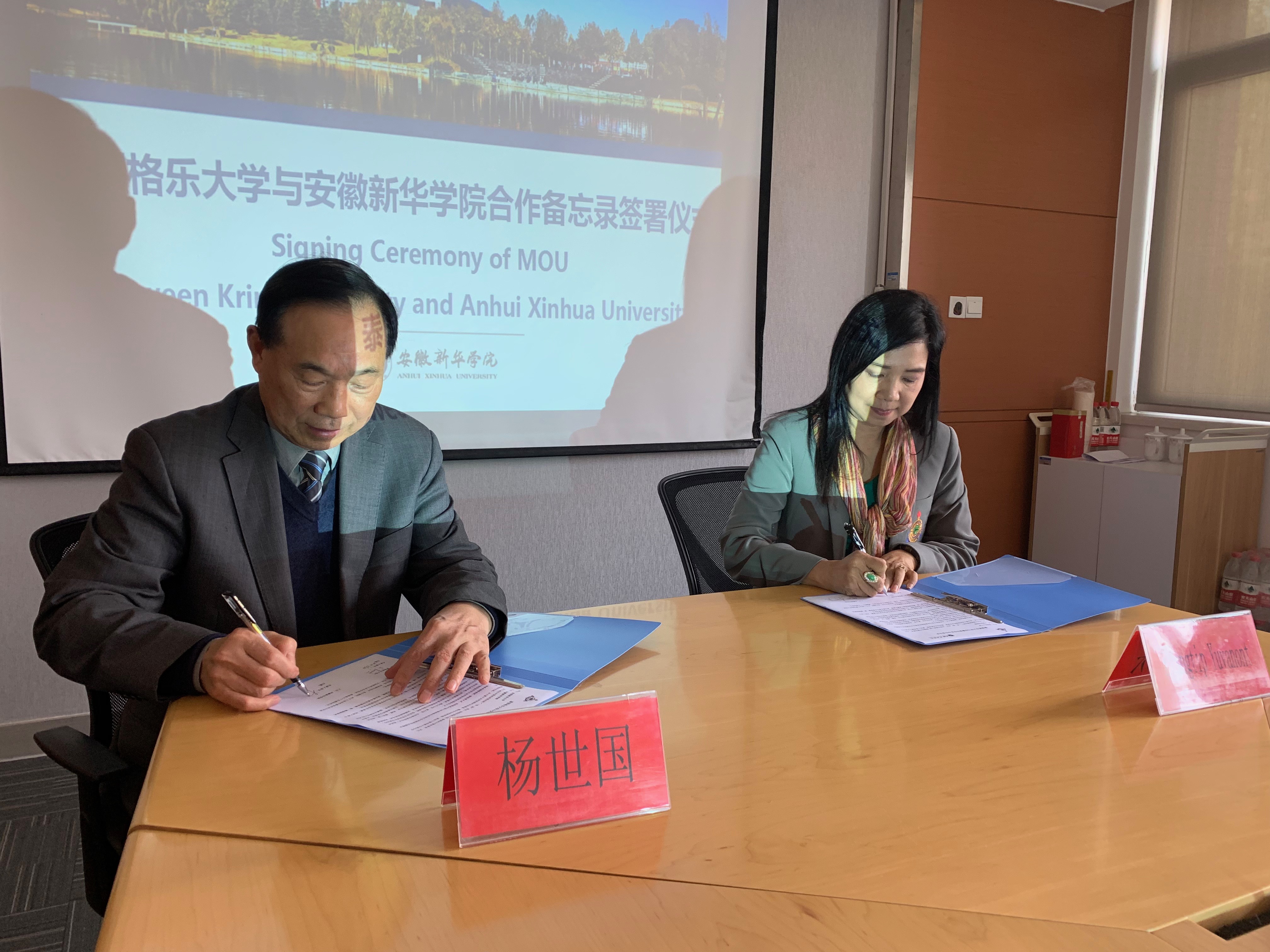 会谈结束时,杨世国作总结。他表示,两校可首先从确立友好合作关系开始,立足学生培养,以beat365官网财务管理、会计学等特色专业为依托,不断丰富合作渠道,加强双方的交流。随后,双方举行两校合作备忘录的签约仪式。泰国格乐大学与beat365官网正式缔结友好关系,双方互赠校际交流礼品并合影留念。