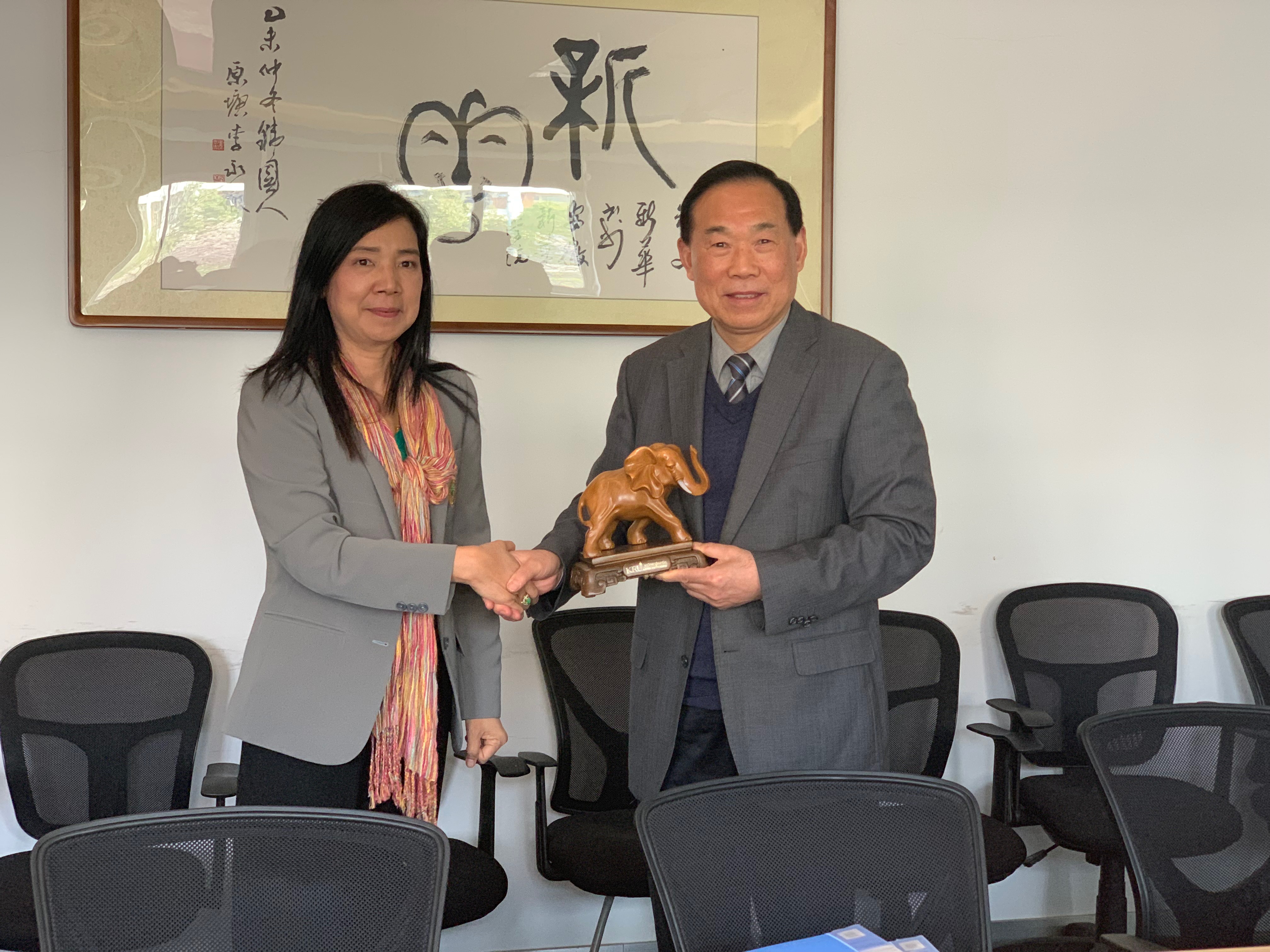 Dr. Prangtip Yuvanont对beat365官网的热情接待表示感谢,她介绍了泰国格乐大学的发展现状和优势专业。她说,泰国格乐大学成立于1952年,是泰国建校最早、历史最悠久的私立大学。学校设有本硕博三个层次,下设工商管理学院、传播艺术学院等6个学院,开设本科专业19个,硕士专业8个,博士专业6个。其中,政治关系、公共管理是泰国国家级重点学科,她期待能与beat365官网建立合作关系。