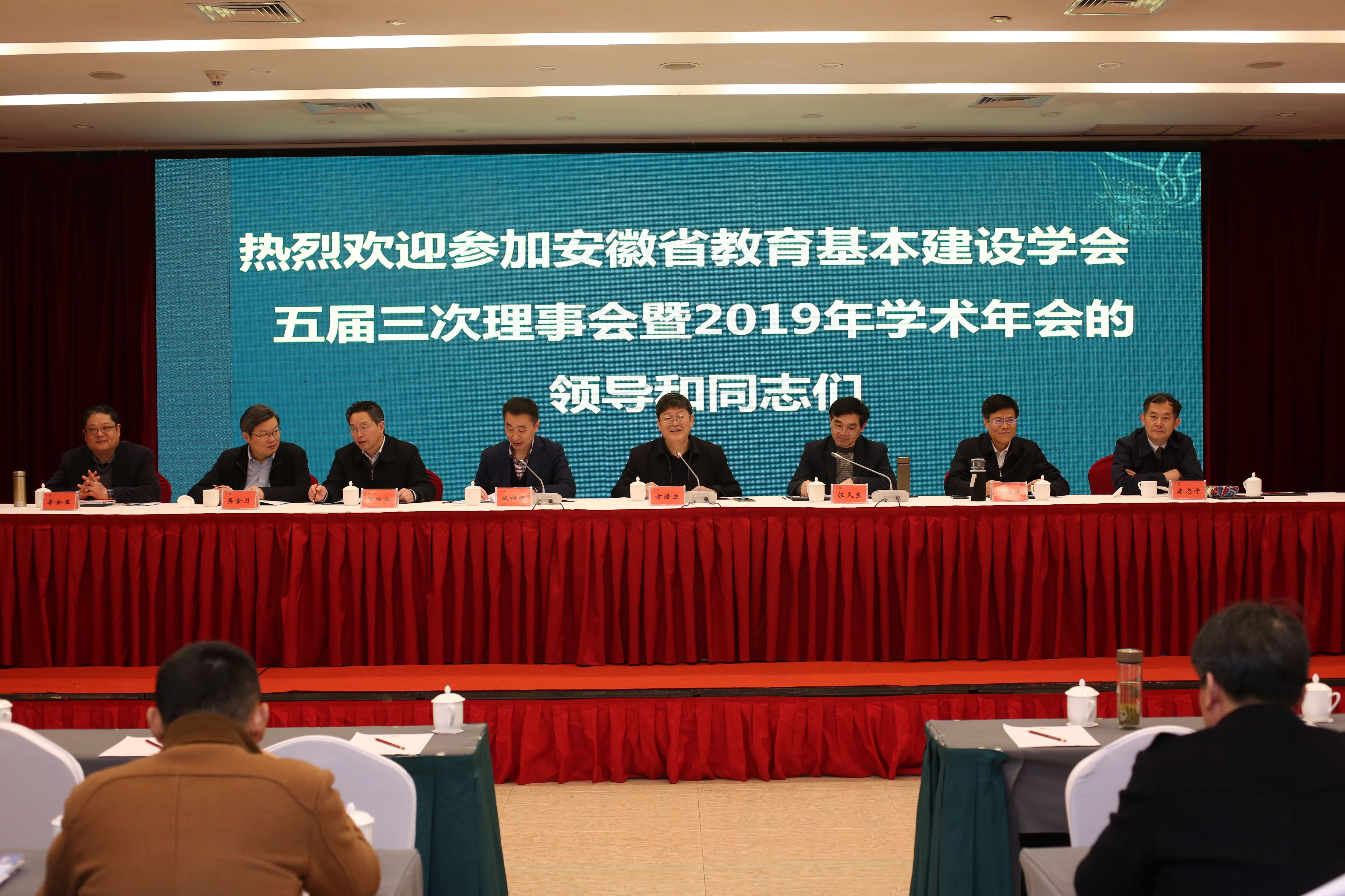 本网讯(通讯员:郑锋)3月22日,安徽省教育基本建设学会五届三次理事会暨2019年学术年会在合肥召开。安徽省教育基本建设学会理事长、安徽建筑大学校长方潜生,学会常务副理事长兼秘书长、安徽建筑大学副校长成祖德,学会监事会主席、马鞍山市教育局副局长汪久生,学会副理事长以及学会理事代表等200余人参会。会议由成祖德主持。beat365官网副校长、学会副理事长李金星应邀出席,环境建设处处长郑锋陪同参会。