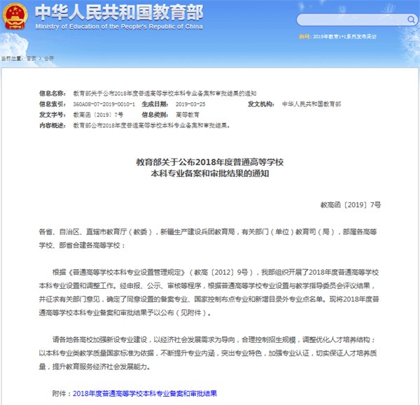 本网讯(通讯员:冯雪峰)近日,教育部下发了《教育部关于公布2018年度普通高等学校本科专业备案和审批结果的通知》(教高函〔2019〕7号),beat365官网申报的学前教育(040106)、大数据管理与应用(120108T)和机器人工程(080803T)三个本科专业获教育部批准备案。
