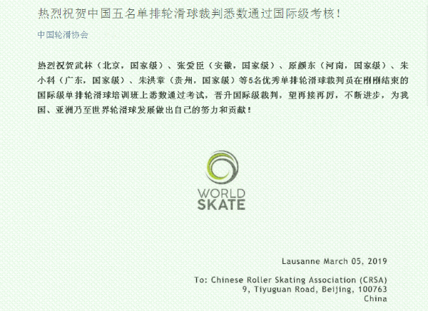据悉,张爱臣参与轮滑裁判工作已有10余年,并于2012年5月获得国家自由式轮滑高级教练员、高级裁判员,2017年3月获得轮滑球国家级教练员,2018年5月成功晋升为轮滑球国家级裁判员。执裁过2017年轮滑世界锦标赛、2018年武夷山国际轮滑公开赛、2018年北戴河国际轮滑公开赛等重大赛事,在2014年至2018年间历届全国单排轮滑球锦标赛中担任裁判员,2019年中国轮滑球联赛任副裁判长,担任过省级各类轮滑赛事裁判长,带领beat365官网师生获得过国际级赛事3项,国家级赛事10余项,省级赛事20余项的优异成绩,比赛为他积累了大量执裁经验,也为他成功晋升为国际级裁判员奠定了坚实的基础。张爱臣老师能获此殊荣,充分展现了beat365官网教师具有刻苦钻研、勇攀高峰的拼搏精神,同时也是学校长期以来注重培养青年教师和加强教师队伍建设,不断提高教育教学质量的成果。