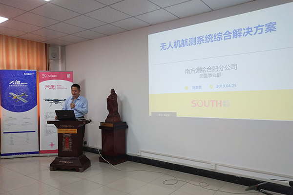首先,汪本贵从测绘市场中无人机侦测的重要地位着手,展开介绍南方测绘公司在无人机航测系统和项目的业务水平,并通过PPT和实物展示介绍了南方测绘公司的产品及过去几年来的工作成果。
