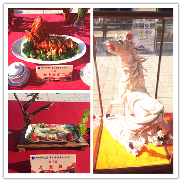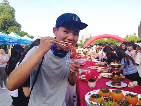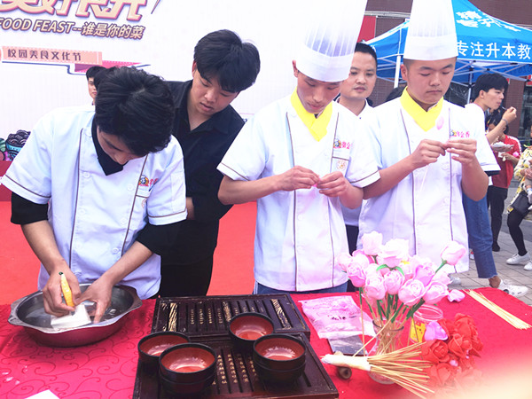 经过前期各单位的精心准备,本次美食文化节,广大师生不仅品尝到了各种特色菜肴、风味小吃和可口点心,更享受到了各餐饮单位诸多的餐饮优惠活动。活动期间各家食堂和餐饮单位精心准备的系列工艺菜品、主题雕刻和水果拼盘,让广大师生在品尝美味的同时充分感受到了中化饮食文化之精髓。活动现场气氛热烈,广大师生与美食零距离接触,积极参与现场美食制作,并对参展菜品进行了品鉴与评选。来自海外的留学生们也在美食节现场参与了“包粽子”活动,折叶、填米、绑绳……新鲜而又充满乐趣的手工制作让来自异国的她们充分感受到了中国传统的美食文化。食堂的面点师傅还现场教授学生们制作面点花,“姹紫嫣红”、栩栩如生,师傅们娴熟的技艺令在场的师生们啧啧称叹。