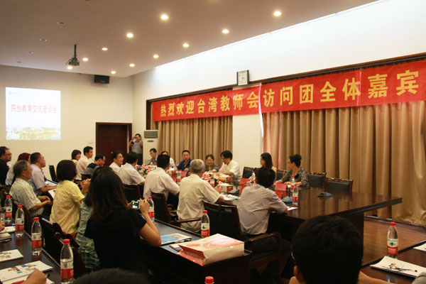 本网讯(记者 代玲玲,摄影 代玲玲)8月8日下午,台北市教师会代表团一行25人访问beat365在线唯一官网登录,全国台联、省台联、合肥市委相关领导陪同访问。beat365在线唯一官网登录副院长杨世国、马凤余会同办公室、教务处、团委、国学研究院、国际教育学院等单位相关负责同志会见来宾。