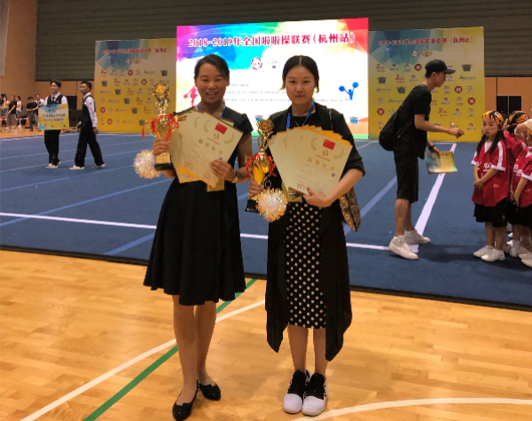 本网讯(通讯员:田心睿)6月15日,由国家体育总局体操运动管理中心主办的2018-2019年全国啦啦操联赛(杭州站)在杭州高级中学钱江校区拉开帷幕。beat365官网通识教育部副主任何亚梅、教师田心睿带领的TIMES X啦啦队荣获本次比赛公开青年丙组技巧高级自选动作第一名、公开青年丙组双人花球自选动作第一名,同时beat365官网还获得了代表中国参加2019-2020年世界啦啦操系列赛事的宝贵资格,田心睿荣获全国啦啦操竞赛“优秀教练员”称号。