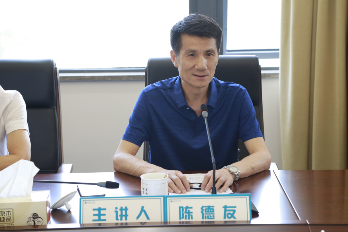 陈德友从找准研究主题、规划论证思路、设计研究框架、梳理前期成果等方面讲解了如何进行哲学社会课题项目申报,并用具体实例进行了生动说明。他勉励在座各位青年教师,做学问要有锲而不舍的精神,要迎难而上;要聚焦某一个研究方向,稳扎稳打,厚积薄发等等,深入浅出地向在座教师阐述了一个道理:优质的哲学社会科学研究须结合时代脉搏,挖掘时代价值。