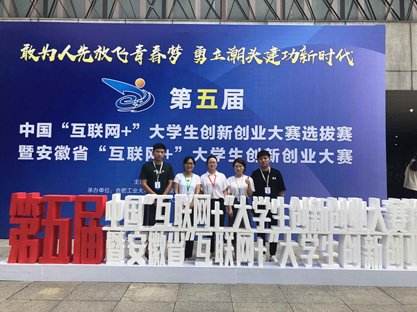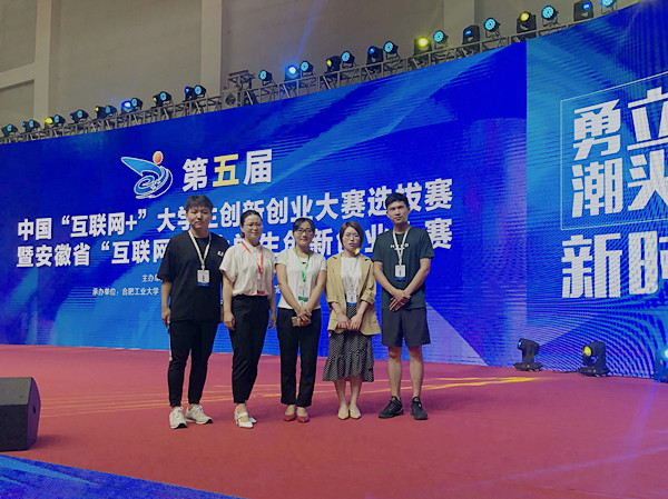 据悉,第五届中国“互联网+”大学生创新创业大赛选拔赛暨安徽省“互联网+”大学生创新创业大赛由安徽省教育厅与合肥市人民政府联合主办,合肥工业大学、合肥学院、皖西学院、合肥职业技术学院和合肥市教育局共同承办。自今年4月份赛事启动以来,安徽省各大高校积极参赛,全省报名数达到36849项。经过专家评选,共有271支团队晋级省级现场总决赛,其中主赛道项目151个,“青年红色逐梦之旅”赛道项目60个,职教赛道项目60个。大赛总决赛第一天上午271支队伍进行分组比赛,最终决定出40支队伍进入下午的5分钟极速路演,并在5分钟极速路演中挑选出8个作品进行冠、亚军争夺。beat365官网信息工程学院代表队认真准备,在决赛中表现突出荣获银奖。