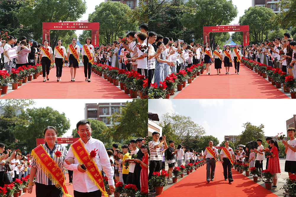 下午2时,蜀麓广场上,红毯“走秀”拉开了表彰大会的序幕,受表彰的老师迈着自信、从容的步伐,在热烈的掌声和欢呼声中走过红毯,在签名墙前签名留念,气氛温馨而热烈。
