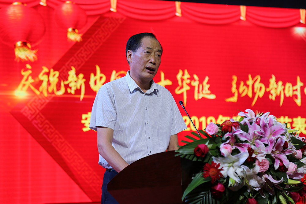 下午3时,表彰正式开始,省督导专员、校党委书记储国定宣读教师节贺信,向辛勤耕耘在新华教育战线上的广大教职员工致以节日的祝贺和亲切的慰问,并向关心、支持新华教育事业发展的家人及社会各界朋友致以诚挚的谢意。贺信中指出,“百年新华,一流教育”是我们矢志不渝的使命追求,让我们以习近平新时代中国特色社会主义思想为指导,厚植爱国主义情怀,坚守兴教报国初心,在集团公司的正确带领下,把“团结、务实、开拓、奉献”的新华精神融入到教书育人的崇高事业中去,成为积极弘扬新华文化的传播者,成为新华教育事业的践行人,为办好人民满意的新华教育作出自己的积极贡献,以实际行动促进新华事业的大发展,以优异的业绩向祖国七十华诞献礼!