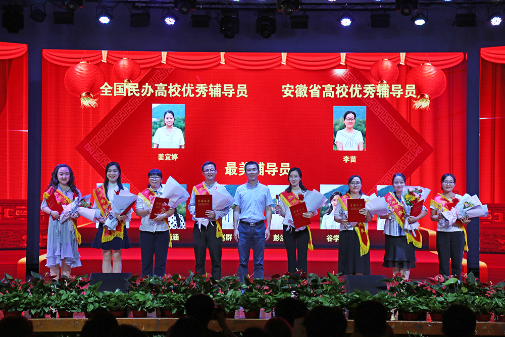 接着,“最美辅导员”“全国民办高校优秀辅导员”和“安徽省高校优秀辅导员”上台领奖,副校长方纯洁为获奖者颁奖。