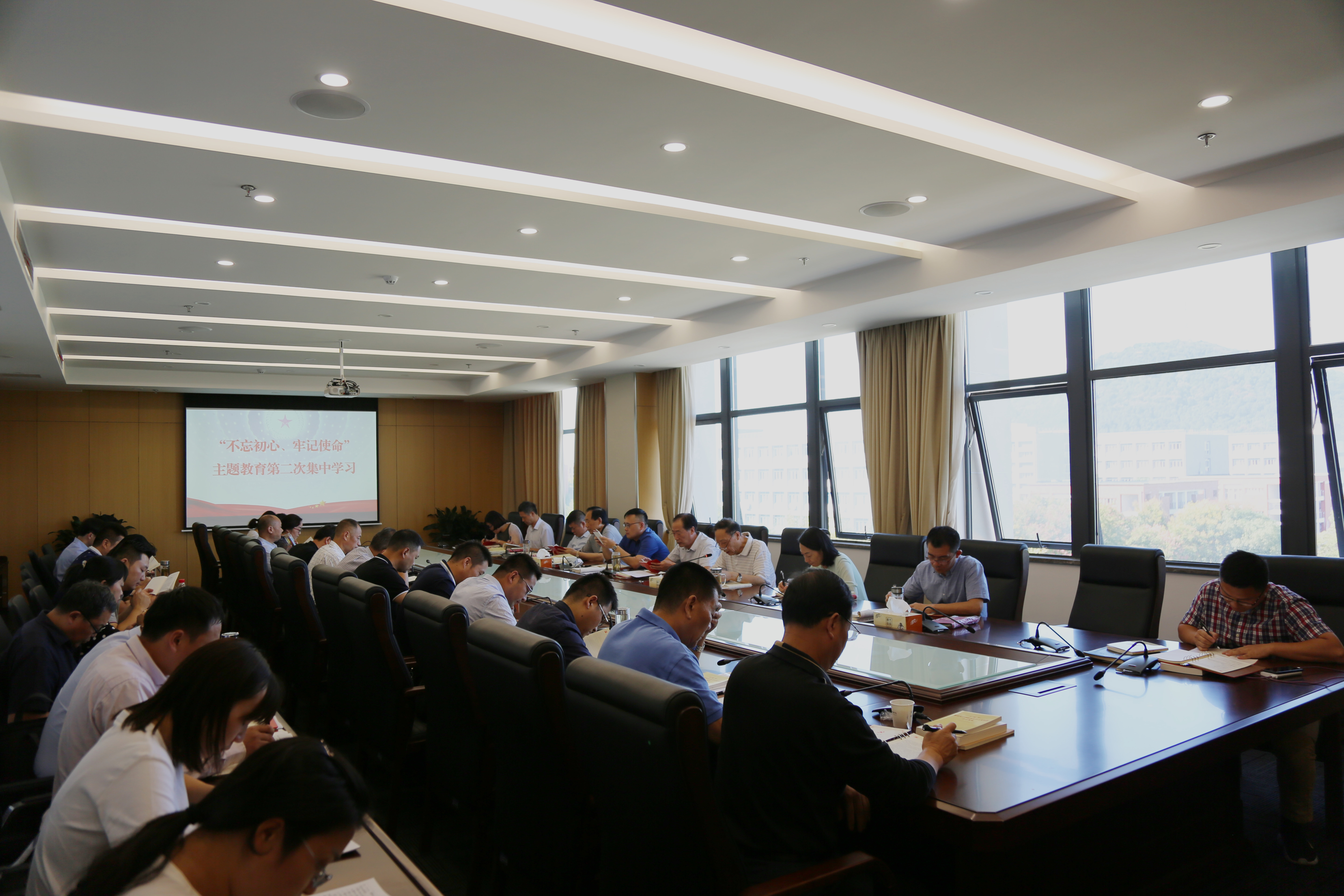 本网讯(通讯员:刘洋)9月23日下午,校党委在科研办公楼开展了“不忘初心、牢记使命”主题教育第二次集中学习,校党政领导班子全体成员,各党总支(直属党支部)书记,各二级单位负责人参加了学习。