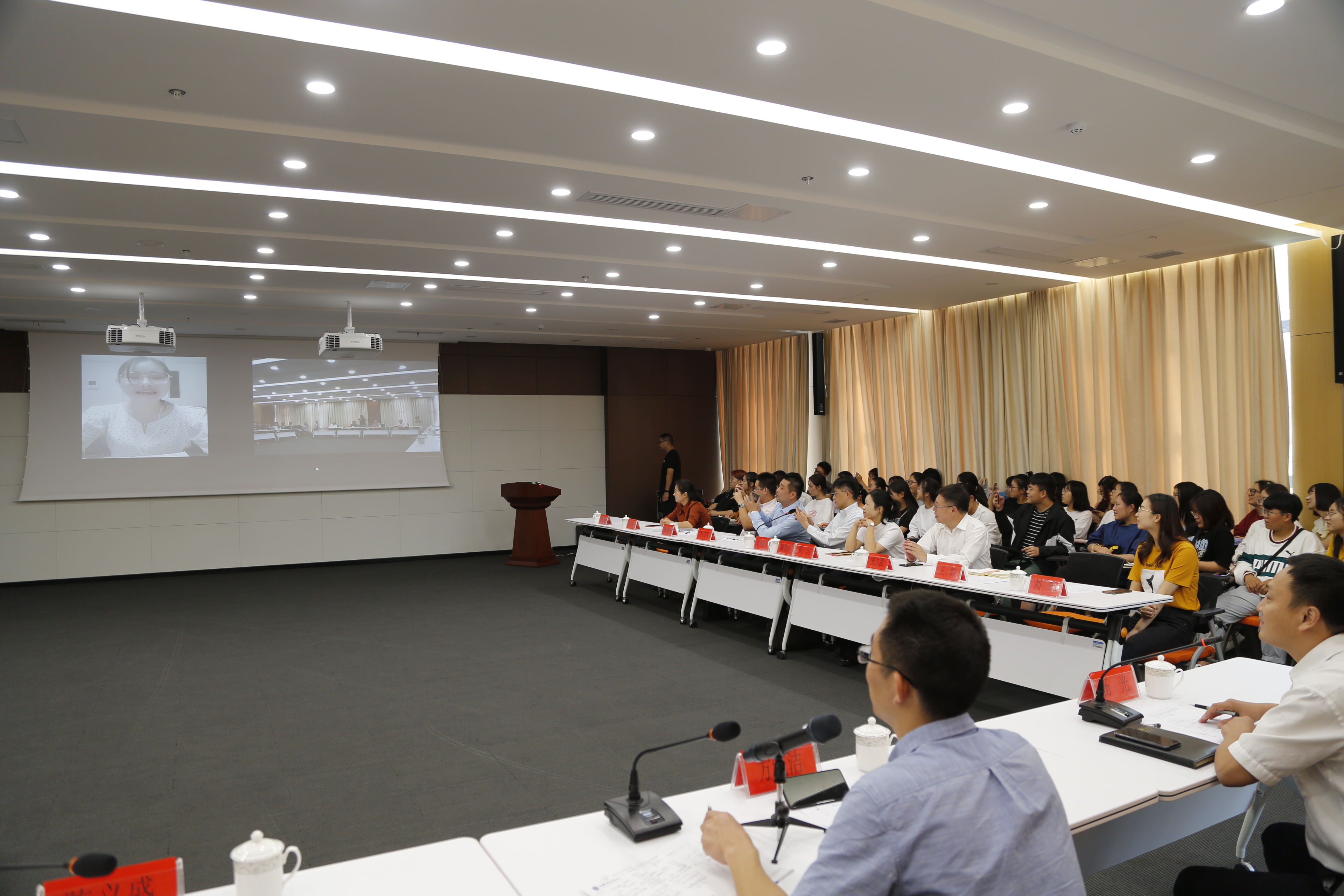 其次,在欢送会的网络视频连线中,方纯洁慰问了正在日本石乃川实习的孙丽同学,对所有在日本实习的同学们带去了问候并表示要多学习多思考多沟通。而孙丽同学也为在座的同学分享了在日本实习的工作经历,鼓励大家走出去才会有收获。