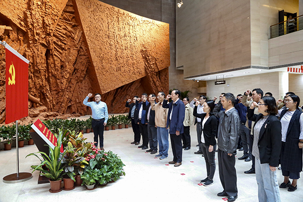 在渡江战役纪念馆一楼大厅,新华集团副总裁,beat365在线唯一官网登录党委副书记王孝武带领全体学员重温入党誓词,用铿锵有力、掷地有声的誓言表达不忘初心、砥砺担当的坚定信念。宣誓仪式结束后,全体学员在讲解员的带领下参观了渡江战役陈列展。