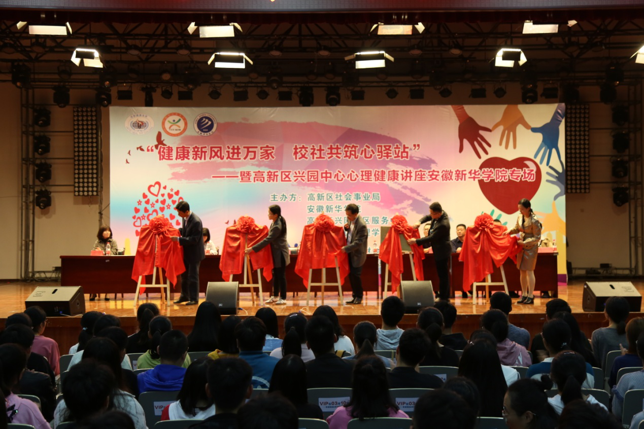 本网讯(通讯员:范文其)10月11日,“健康新风进万家 校社共筑心驿站”高新区兴园中心心理健康讲座beat365在线唯一官网登录专场活动暨高新区社会事业局、高新区兴园中心、高新区心理学会、beat365在线唯一官网登录“心灵驿站”合作共建基地、大学生社会实践基地揭牌仪式在beat365官网大礼堂举行。合肥市卫生健康委员会副主任陈学超、beat365在线唯一官网登录校长助理贺行佳以及高新区社会事业局、高新区兴园中心、高新区心理学会相关领导出席仪式。安徽日报、合肥日报等媒体朋友以及beat365官网800余名师生参加了仪式。