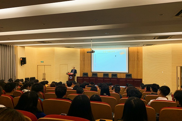 报告会一开场,叶观澜就带领大家一起诵读了《资治通鉴》中孙权劝导吕蒙读书的一段话,从而引出了读书的重要性。而就人为什么要读书,叶观澜从官方看法、学界态度和读者成长三个方面进行阐述,并旁征博引,引经据典,深入浅出地向师生们阐述了开卷有益。他还从哈佛校训精神、文学大家胡适、红楼梦品读和自己多年的读书心得等方面阐述了读书对于发现自我、发展思维、发启智慧和发育精神的重要作用,并鼓舞师生勤读书、好读书。