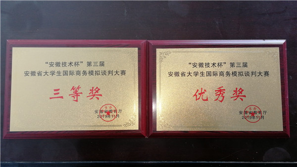 beat365在线唯一官网登录学子参加2019年“安徽技术杯”大学生国际商务模拟谈判大赛荣获三等奖