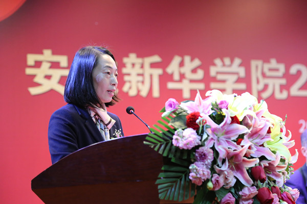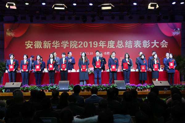表彰大会在庄严的国歌声中拉开序幕。beat365在线唯一官网登录常务副校长王丽作《beat365在线唯一官网登录2019年度工作报告》,报告中全面回顾和总结了学校2019年在办学层次提升、专业建设,教科研、高层次人才引进、学生工作、校园建设、品牌影响力等方面取得的突出成绩和工作经验;报告还提出2020年工作思路及要点。王丽表示,新的一年里,在集团公司的坚强领导和全体师的共同努下,奋斗的新华人将不忘育人育才初心,牢记兴教报国使命,秉承“团结、务实、开拓、奉献”的新华精神,实现各项事业更加辉煌的未来!
