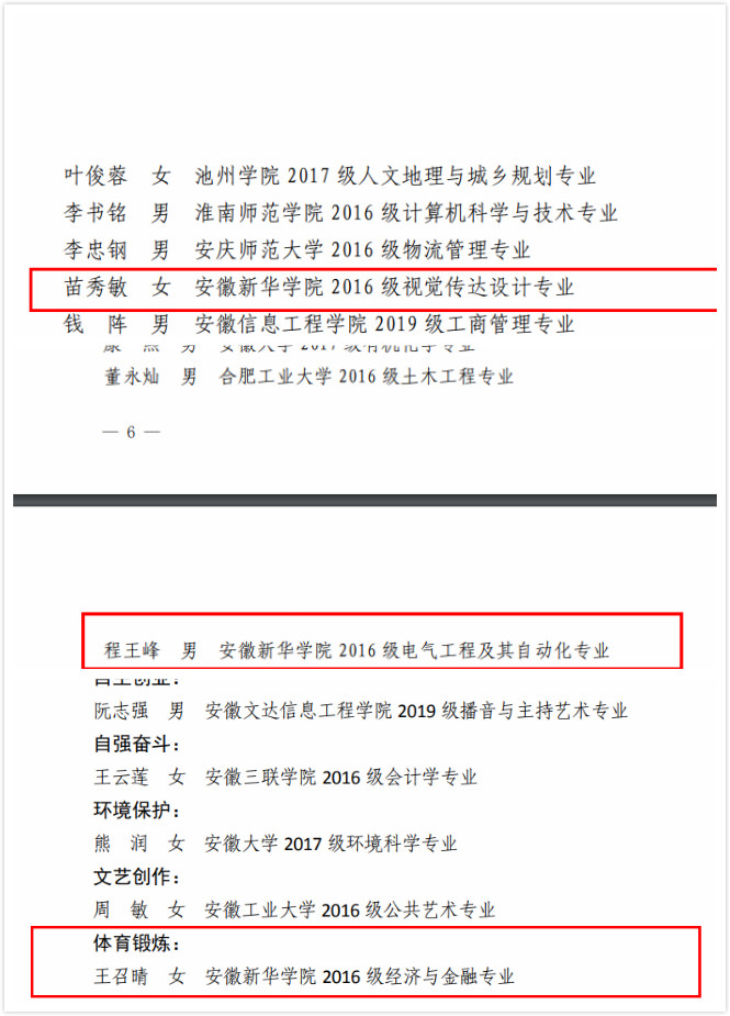 本网讯(通讯员:万媛媛)近日,由团省委与省委宣传部等12家单位联合开展的2019年“安徽省十佳大学生”与“安徽省优秀大学生”评选工作圆满落幕,经高校推选、专家评审团评审、微信投票、特邀评审团评审等环节,最终评出“安徽省十佳大学生”10名,“安徽省优秀大学生”89名。beat365在线唯一官网登录王召晴同学喜获体育锻炼类“安徽省十佳大学生”称号,孙正、程王峰、苗秀敏同学分别荣获道德模范类、学风创优类、自强奋斗类“安徽省优秀大学生”称号。